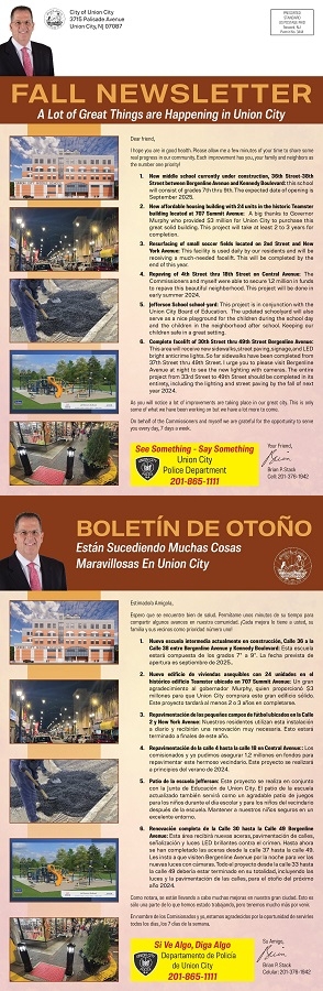 6. Complete facelift of 30th Street thru 49th Street Bergenline Avenue: This area will receive new sidewalks, street paving, signage, and LED bright anticrime lights. So far sidewalks have been completed from 37th Street thru 49th Street. I urge you to please visit Bergenline Avenue at night to see the new lighting with cameras. The entire project from 33rd Street to 49th Street should be completed in its entirety, including the lighting and street paving by the fall of next year 2024.