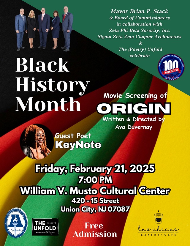 Posted February 19, 2025Join us for an inspiring evening as Mayor Brian P. Stack and the Board of Commissioners, in collaboration with Zeta Phi Beta Sorority, Inc. Sigma Zeta Zeta Chapter Archonettes and The (Poetry) Unfold, celebrate Black History Month with poetry, film, and community spirit.