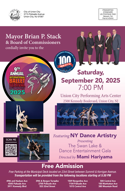 Posted September 04, 2025Mayor Brian P. Stack and the Union City Board of Commissioners proudly present this unforgettable evening of culture and artistry in celebration of Union Cityβs 100th Anniversary.